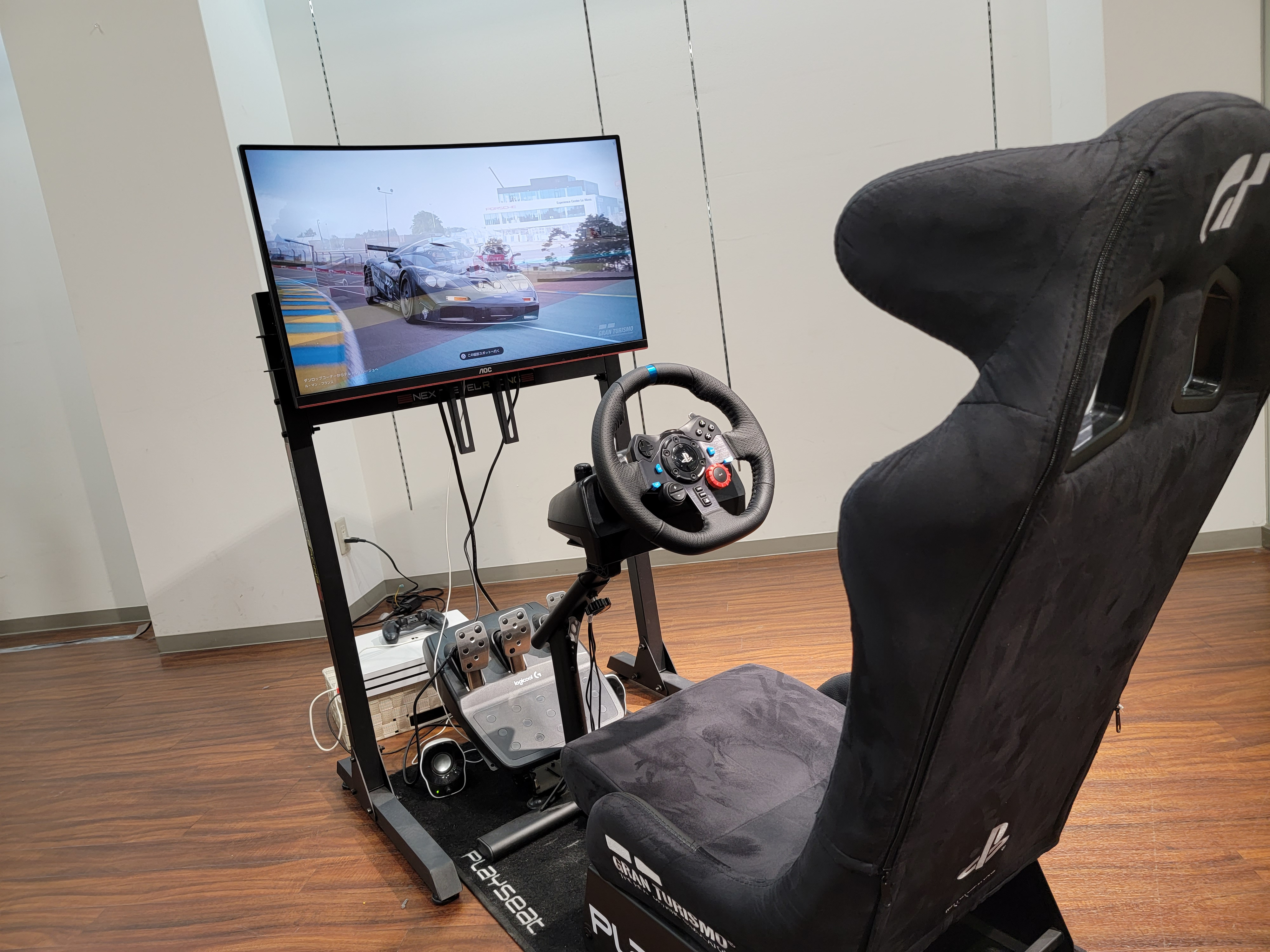 eスタジアム泉佐野内に本格的なドライブシミュレーター型の試遊台を設置し、『グランツーリスモ7』(PS4®用)をプレイいただけます。本物のレーシングカーと遜色ない設備でレースを体験しよう!